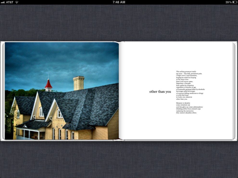 Thanks to the smart folks over at Blurb, you can now download Another American Childhood for your iOS (iPhone, iPad, iPod) device. It looks particularly wonderful on the bigger screen of the iPad, but on any device it is a nice break from Words with Friends. It is only $4.99 and $3 goes directly to the National MS Society. Check it out here.